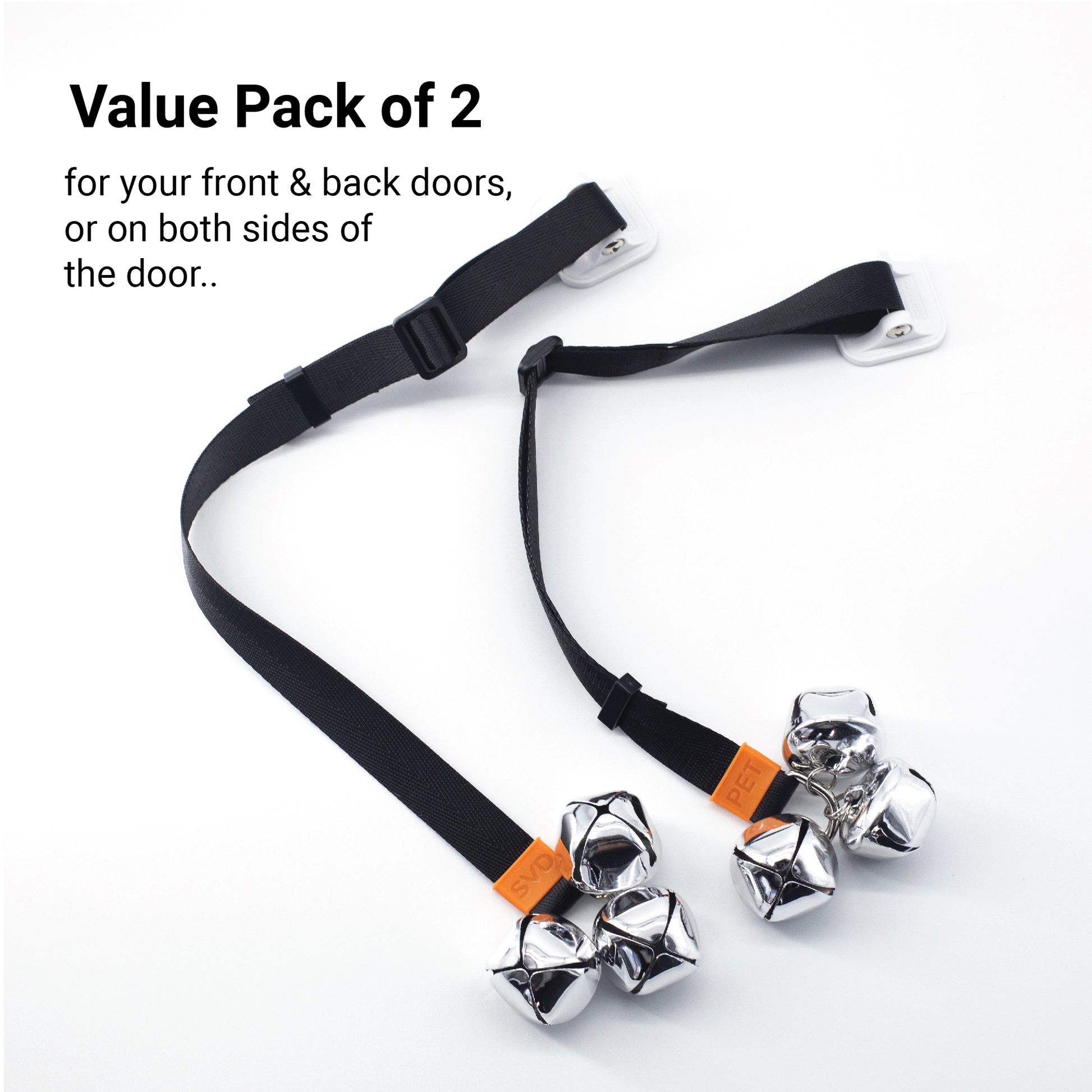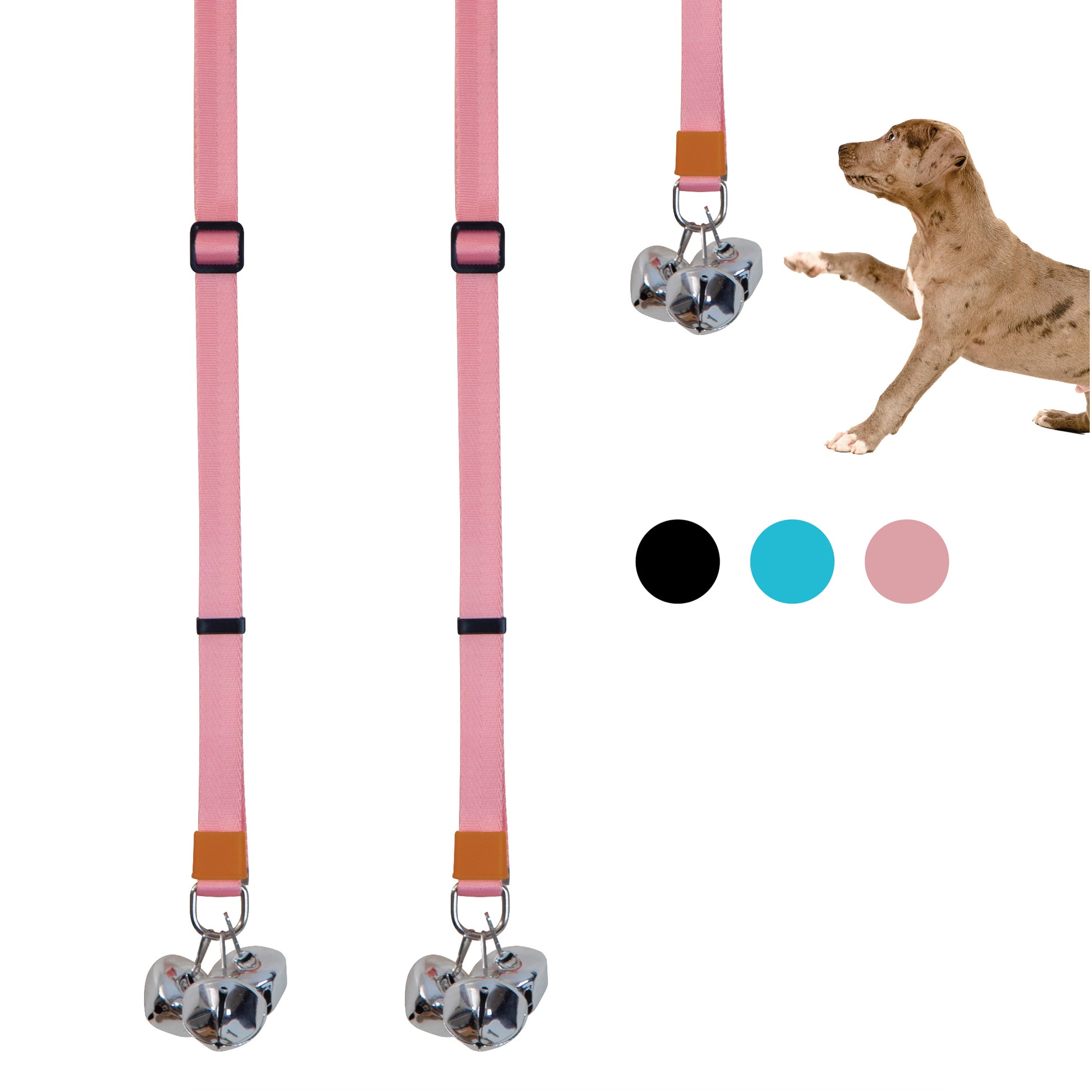 The height and length of the potty bell can be adjusted to suit any dog size. The bell can be placed at any height and the length can be adjusted from 12 inches to 40 inches.