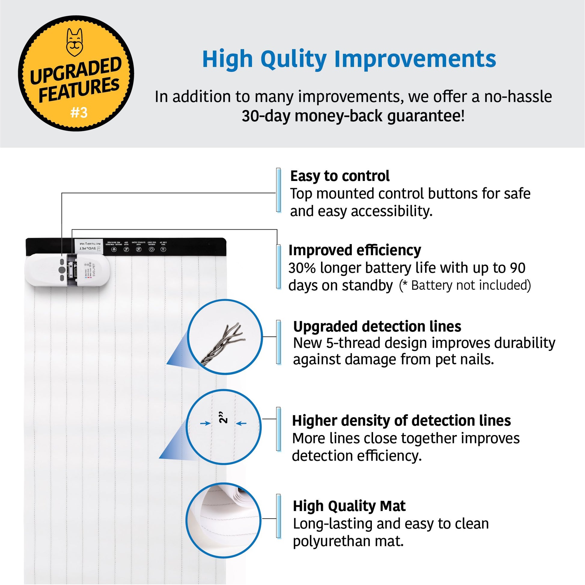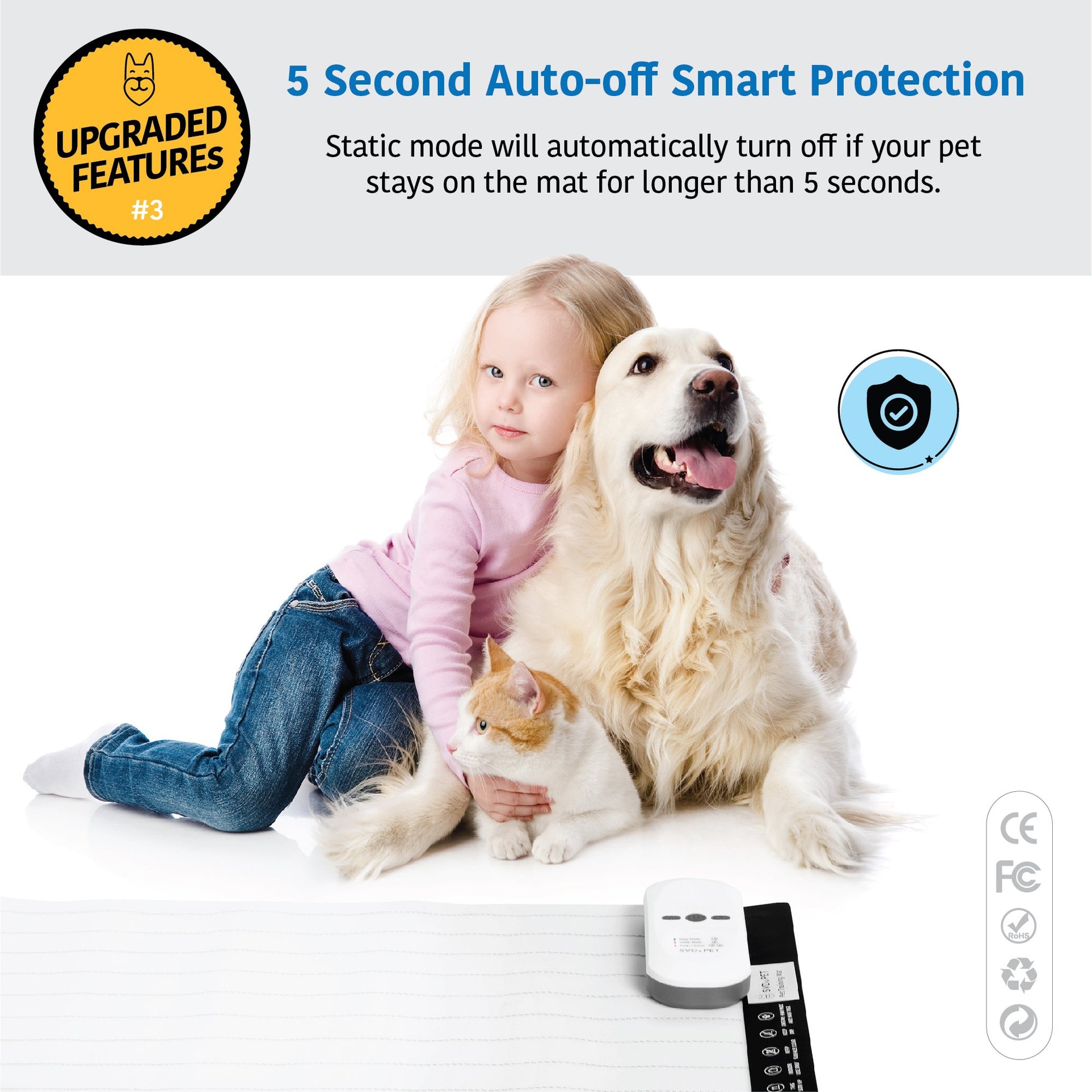 Choose from Static mode, Beep mode, or Static + Beep mode. All modes feature 5 levels of intensity for you to train from small to large cat or dog comfortably.Because we understand that some pets are more sensitive to sound, our pet training mat offers 5 sound intensity levels. Choose between 90 to 110 decibels to safely train a cat or small dog as an alternative to Static mode.