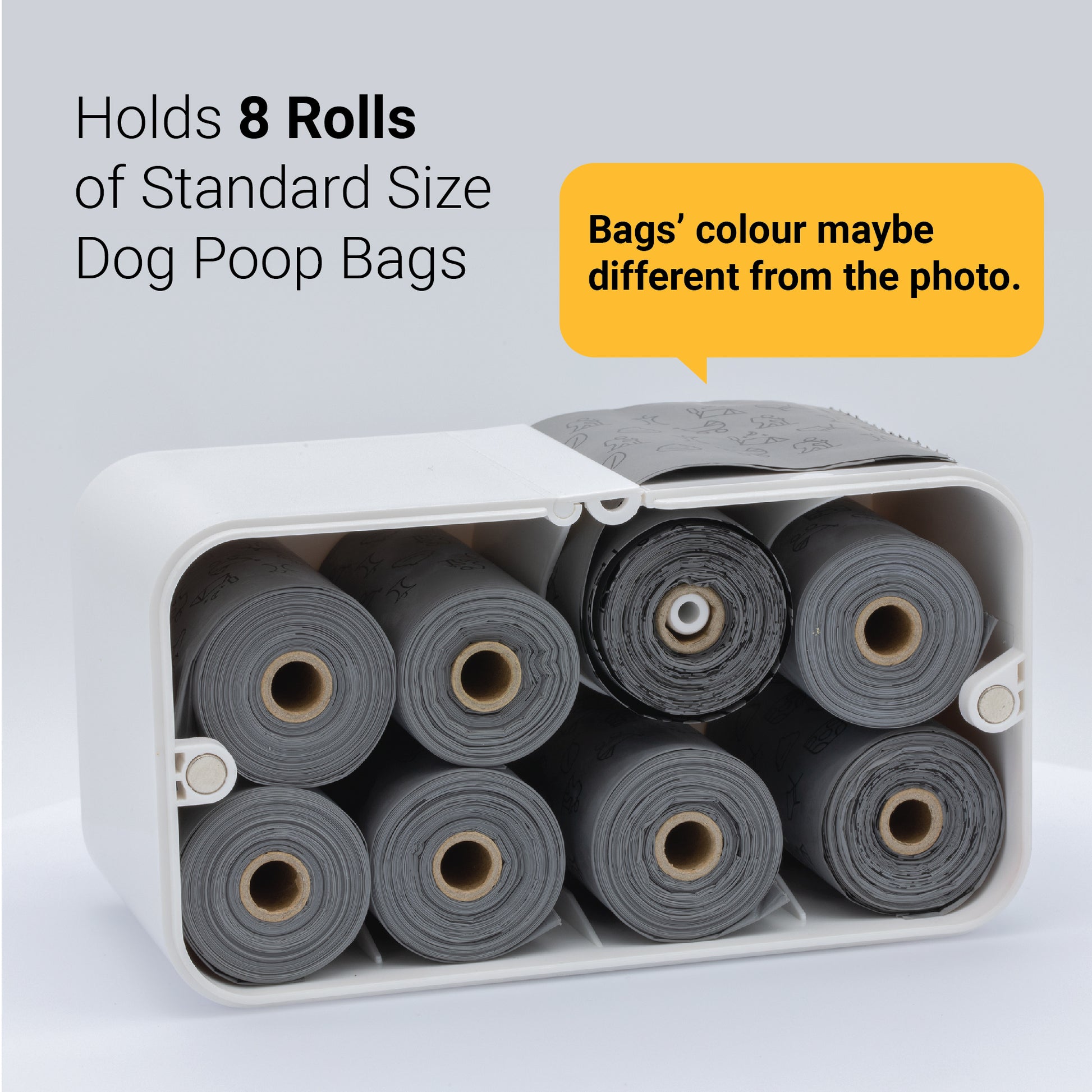 Holds 8 Rolls of Dog Waste Bags: